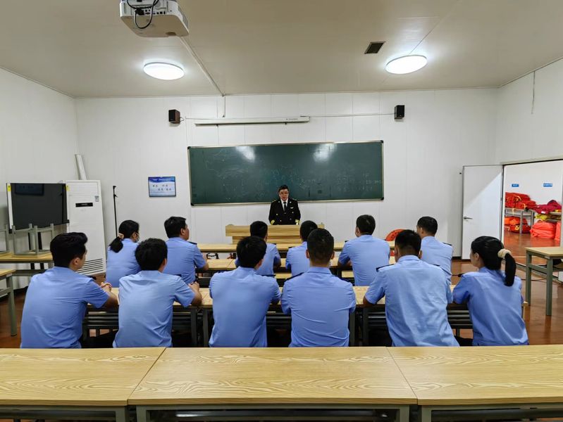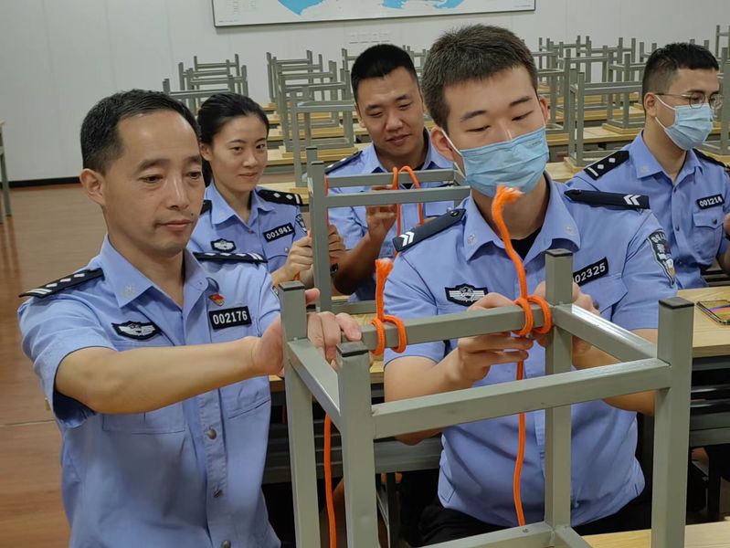 仪式结束后,板桥校区实船实训基地资深船长王书扬按照长航公安实战大练兵的要求,结合船舶特点和水域工作实际,以实战为导向,采用“理论+实训”一体化的现场教学方式,围绕水域事故的救援特点、船舶救生设备的功能和使用方法、常用绳结的用途和打法等重点内容为干警们呈现了一堂实用且生动的业务技能培训课。通过培训,切实提升了参训民警的水域救生技能和实际操作水平,为积极应对水域突发紧急警情提供了保障。
