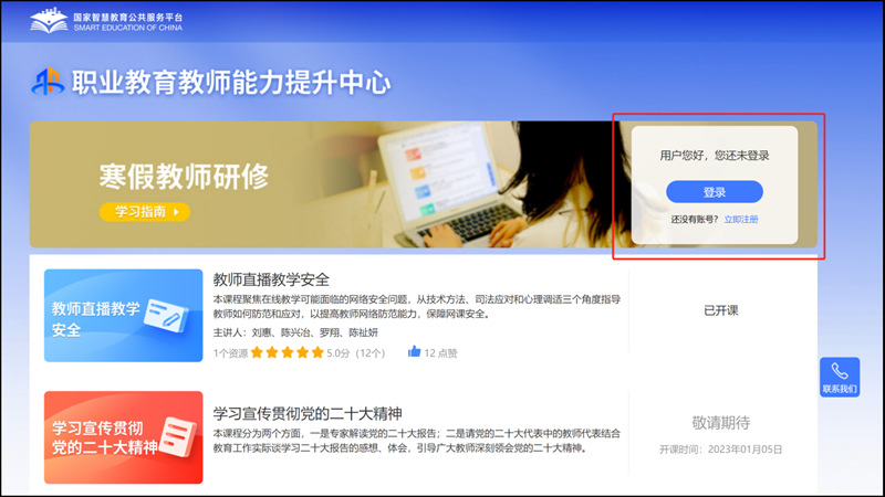 操作过程中可参考2023年“寒假教师研修”学习操作手册【职教教师篇】