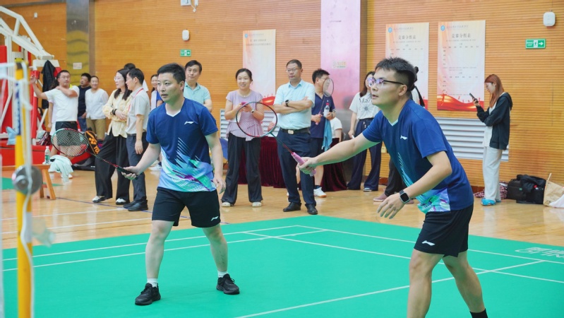 为深入推进幸福学校建设工程,提升教职工身体素质和文体活动品质,9月24日下午,由我校体育工作委员会主办、工会与体育部承办的教职工羽毛球团体比赛在江宁校区体育馆举行。全校14个分工会参赛,100余名教职工整装上阵、同台竞技。开幕式由副校长马洪涛主持,党委副书记缪克银致辞,校长温华兵宣布比赛开幕。