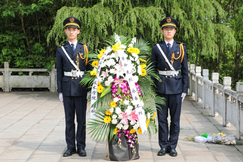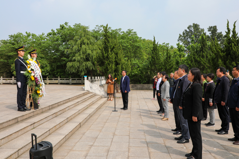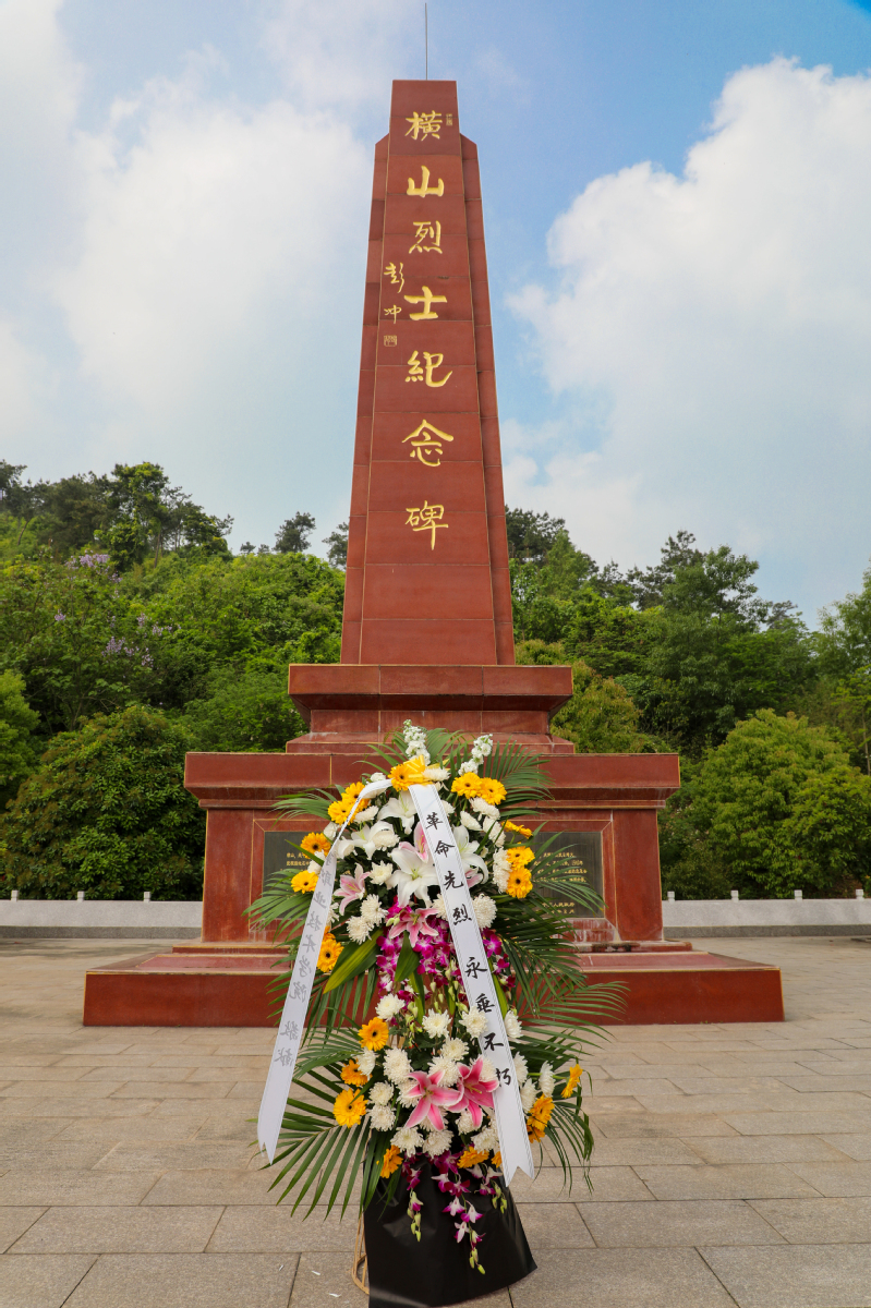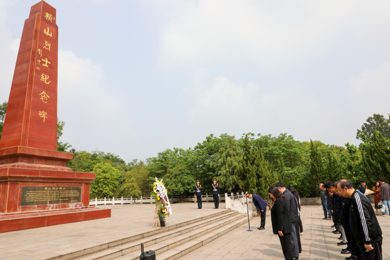 在横山烈士纪念碑前,学校国旗班将一组花篮敬献于横山烈士纪念碑下,党委副书记王卫兵带领全体与会人员向革命烈士默哀行鞠躬礼,敬献鲜花。随后,大家缓步绕行,瞻仰烈士纪念碑,表达对革命烈士的崇敬之情。