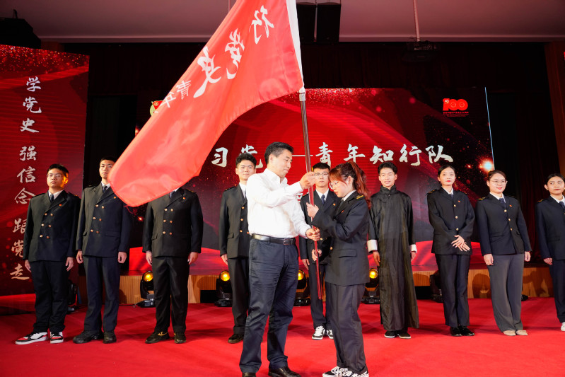 表彰结束后,学校团委发布了“我为同学办实事”项目清单,田乃清为“青年讲师团”学生讲师代表颁发聘书,刘红明为“行习党史——青年知行队”授队旗。今年是建党100周年,学校团委在学校党委、团省委的带领下,深入学习贯彻习近平总书记在党史学习教育动员大会上的重要讲话精神,创新探索“党史、讲习行”团员青年学习实践新模式,推动党史主题教育“看得见”“摸得着”“听得懂”,变得有模有样、有声有色、有形有效。后续,学校团委将在“党史、讲习行”学习教育实践活动基础上,总结学习经验、推动观照现实,坚持同学校育人工作结合,同解决实际问题结合,以“青年讲师团”和“青年知行队”为抓手,着力把学习成效转化为工作动力和工作实绩,为建党100周年、建校70周年献礼。