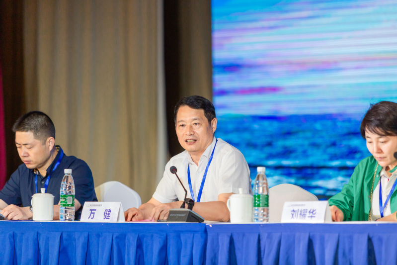 万健致辞,他首先代表学校党委、行政和全校师生对各位专家学者和参赛选手的到来表示热烈欢迎,对长期以来关心学校发展的教育部职教所、省教育厅、船舶行业企业、兄弟院校表示衷心感谢。他说,即将迎来70岁生日的江苏海事职业技术学院是新中国成立后建立的第一所专门培养远洋船员和内河船员的学校,拥有航海技术、港口与智能工程、船舶与海洋工程、港口与航运管理、信息技术与人工智能、文旅与设计6大专业群,是国家“双高计划”建设单位、全国优质专科高职院校、江苏省高水平高职院校建设单位。此次全国职业院校技能大赛船舶主机和轴系安装赛项在江苏海院举办,是对近年来学校改革发展和人才培养工作的高度认可,是对学校在新起点上继续办好人民满意教育的极大鼓励和鞭策。全校师生高度重视,扎实做好赛事筹备、举办期间的各项工作,确保办出“高标准、高水平、高品质”。我们将深入学习贯彻习近平总书记对职业教育工作的重要指示精神,落实立德树人根本任务,适应新形势新任务新要求,深化产教融合、校企合作,培养更多高素质技术技能人才、能工巧匠、大国工匠,为经济社会高质量发展提供更加有力的人才和技能支撑。