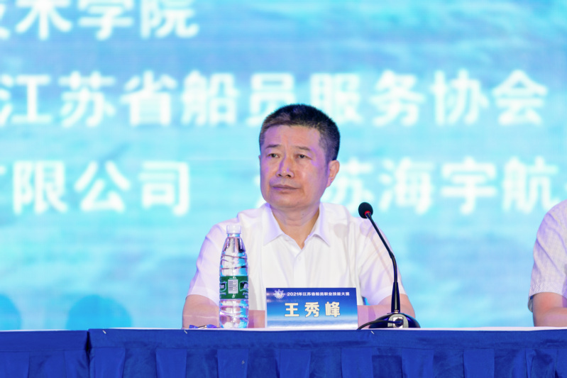 王秀峰讲话并宣布开幕。他指出本届大赛由江苏海事局和江苏省交通运输厅共同举办,是贯彻落实交通运输部等六部委《关于加强高素质船员队伍建设的指导意见》的重要举措,更是《江苏海事关于促进船员队伍高质量发展的三年行动计划》的具体行动。大赛以“匠心演武,逐梦江海”为主题,以弘扬精益求精、追求卓越的航海工匠精神为目标,大赛设置了“网上答题”“理论竞赛”“实操竞赛”“综合知识竞赛”等丰富多彩的竞技方式。作为江苏船员教育、船员培养、船员管理、船员服务全面展示的平台,大赛参与人数多、竞赛内容丰富,比赛规格高,在大幅提升“江苏船员”美誉度的同时,大力弘扬海员精神,激发航运企事业单位、广大船员朋友们的比学赶超热情,丰富郑和航海文化内涵,进一步提升船员职业的获得感和幸福感,增强江苏船员的核心竞争力,提高公众海洋意识、航海意识,营造尊重船员、关心船员、关爱船员的良好氛围。他强调通过本次大赛,我省将涌现出一批优秀行业技能人才,充分发挥示范引领作用,为交通强国梦,为促进江苏船员队伍高质量发展,实现江苏航运强省、船员强省,建设“强富美高”新江苏作出新的更大贡献。