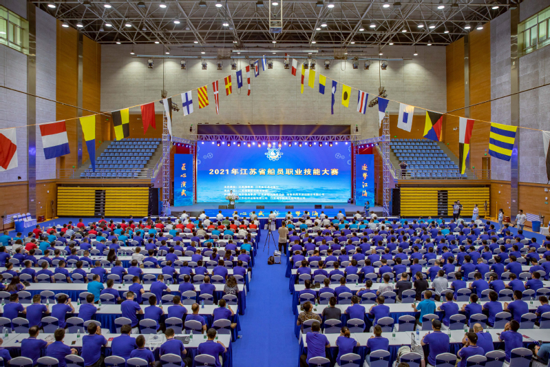 7月13日上午,2021江苏省船员职业技能大赛闭幕式在我校体育馆举行。江苏海事局局长朱汝明、江苏省省人力资源和社会保障厅副厅长顾潮、交通运输部海事局船员管理处处长杨善利、江苏省交通运输厅二级巡视员姜竹生、江苏航运职业技术学院党委书记袁卫国、江苏省船员服务协会会长马长世、连云港海事局副局长丁星、招商局南京油运股份有限公司副总经理王桂付、江苏远洋运输有限公司副总经理瞿名泽、江苏海宇航务工程有限公司董事孙敬东、江苏海事职业技术学院党委书记刘红明、校长万健等出席闭幕式,以及来自全省海事部门、航运企业和相关院校等的64家单位的412名选手共同参加闭幕式,闭幕式由江苏海事局副局长王秀峰主持。
