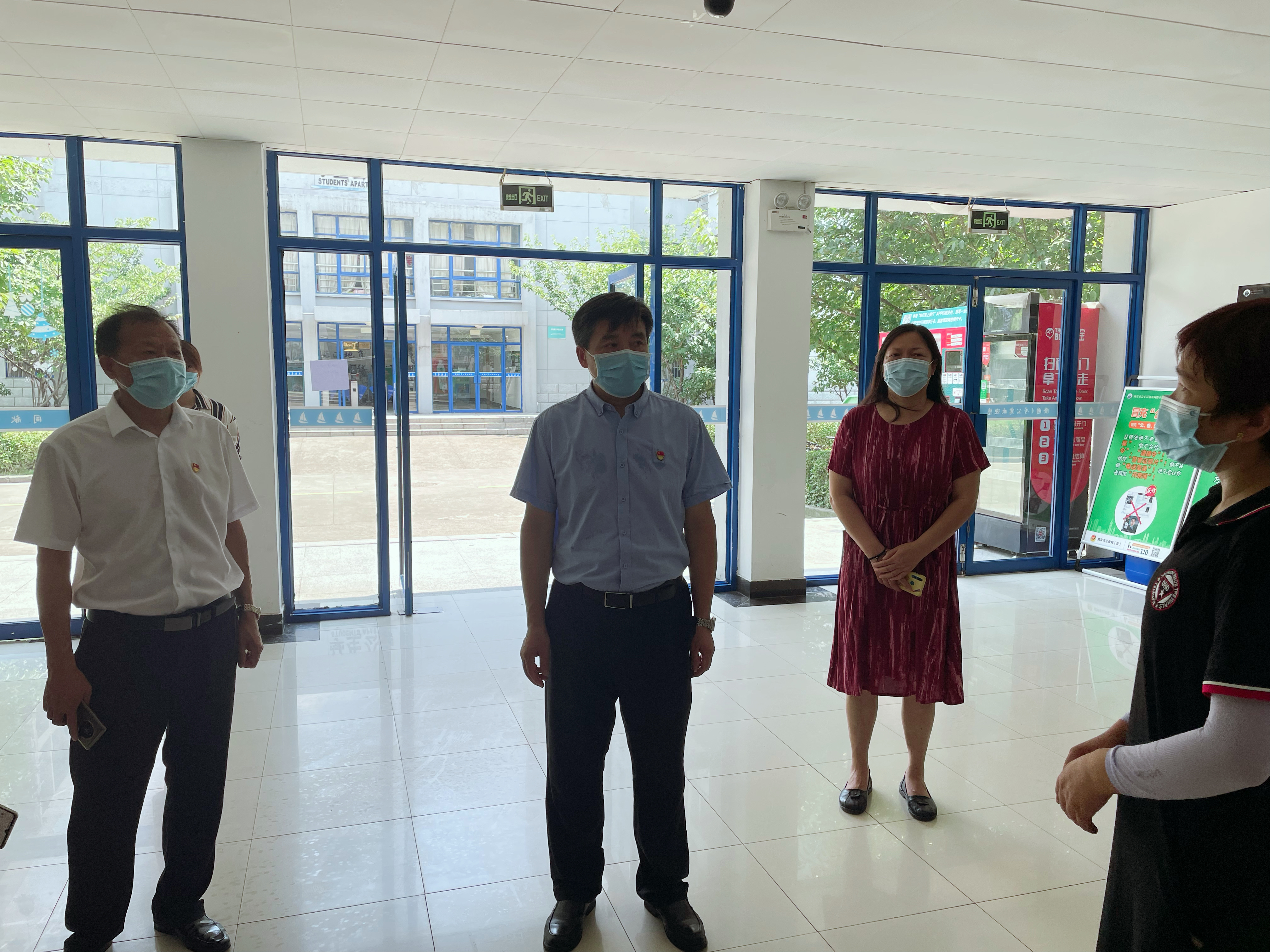 为深入贯彻落实全省教育系统疫情防控工作视频会议精神,进一步巩固疫情防控工作成果,将我校疫情防控工作抓紧抓实,7月31日上午,学校党委书记刘红明、副校长田乃清、党委宣传部部长刘桂香一行在疫情防控领导小组办公室部分成员的陪同下,先后来到学校观察隔离点、学生公寓、思源食堂等地,实地检查防疫工作、慰问一线工作人员。