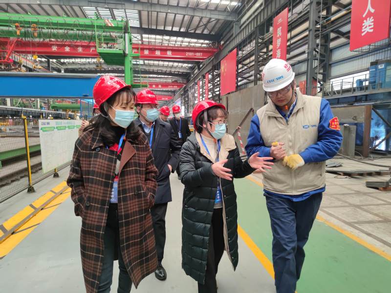 2月25日,船舶行指委组织院校代表与企业代表参观了沪东中华造船厂和上海外高桥造船厂。在上海外高桥造船施工现场,实地考察了中国首制邮轮的建造,作为承载制造强国和海洋战略远景的“国之重器”,大型邮轮是中国船舶工业设计建造难度最高的船型之一。参观中陈晓琴与船厂技术人员、人力资源部等进行了广泛的沟通交流。