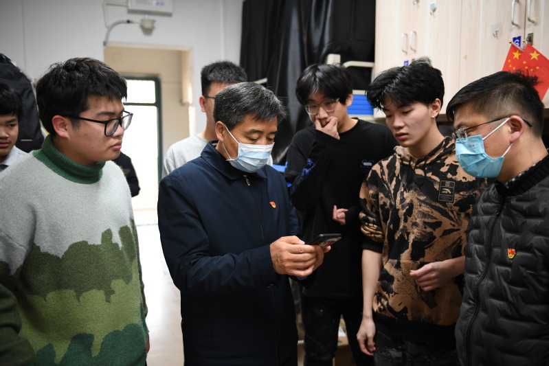 随后,学校党政领导兵分两路走访了学生宿舍,查看学生在线学习状态,校领导们对于学生寄予厚望,勉励学生努力学习,学有所长并在毕业后报效社会。