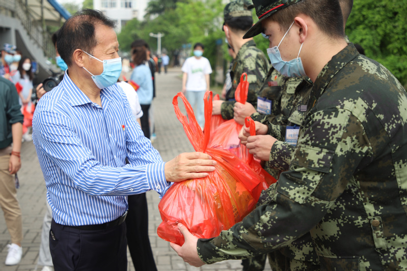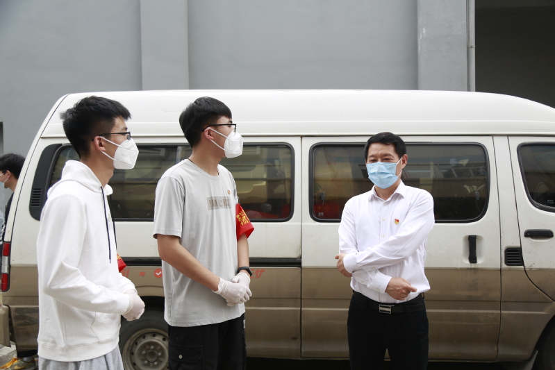 4月23日中午,学校校长万健,副校长田乃清等一行前往青年志愿服务站点,向奋战在一线的青年志愿者们送去慰问与关怀。