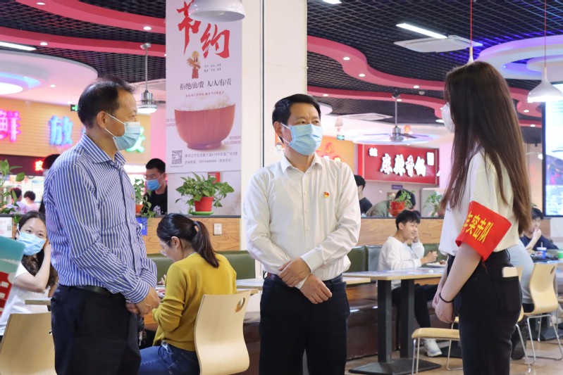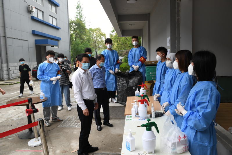 在食堂、快递站、核酸检测点、校园周界巡逻点等志愿服务岗位上,万健一行与青年志愿者们亲切交谈,详细了解了志愿者储备、值守轮换、后勤保障等现状,认真询问了他们在志愿服务过程中的工作情况和实际困难。他们向青年志愿者们的辛勤付出表示感谢,对他们在疫情防控过程中知难而上、无私奉献、吃苦耐劳的青春担当表示高度肯定。