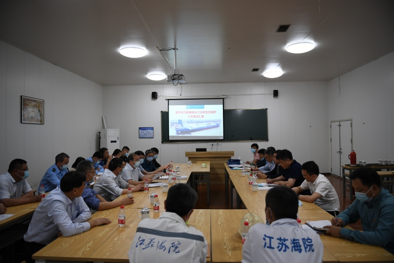 检查组一行首先登上我校教学实习船“育新”轮,查看了基地所辖长江岸线的生态环境。随后,我校基建处和板桥校区管委会办公室相关人员向检查组作了专项工作汇报。我校的实船实训基地位于南京长江江豚省级自然保护区和长吻鮠铜鱼水产种质资源保护区内,按照有关规定,学校于2018年分别完成了长吻鮠铜鱼国家级水产种质资源保护区环境影响专题论证报告、江豚自然保护区影响评价专题报告的编制及报批工作。近年来,学校积极落实水生生态的保护与补偿措施,设立专项资金用于渔业资源增殖放流和水生生态监测、长江江豚种群监测,建设宣传教育基地,购置江豚救护设备等,并有序推进相关工作取得实效。