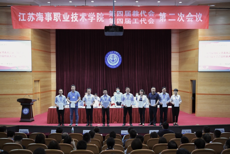 5月21日下午13:45,四届二次“两代会”第二次全体会议在图书馆大报告厅举行,党委副书记王卫兵主持会议,校长万健与工会主席王国清签订了“三双”集体协议。大会审议通过了《工会工作报告》《江苏海事职业技术学院教职工代表大会实施细则》(修订)《学校2021年财务预算执行情况和2022年财务预算情况的报告》《四届一次教代会代表提案落实情况的报告》《工会经费审查报告》《四届二次“两代会”决议》。
