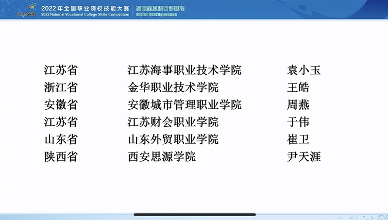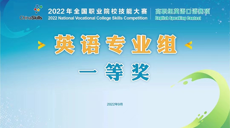 喜报:我校薛媛同学获得2022年全国职业院校技能大赛高职组英语口语赛项(专业组)第一名
