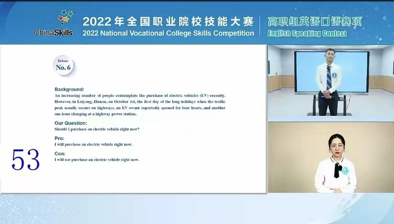 受疫情影响,大赛在保持赛项规程总体框架的前提下,调整为“线上参赛监赛,线下集中评审”的方式举行。大赛包含中国故事、情景交流、职场描述、职场辩论四个部分。在四个环节紧张激烈的比赛中,薛媛同学凭借扎实的语言功底、稳健的台风、过硬的综合素质赢得了评委的一致好评。突破性的成绩充分彰显了我校学生运用英语传播中国文化和进行职场交际的综合能力,展现了高职英语项目化教学改革的丰硕成果。