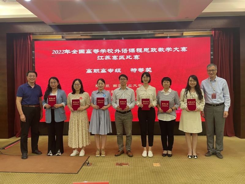 9月29日,2022年全国高等学校外语课程思政教学大赛江苏赛区比赛在南京钟山宾馆成功举行。此次比赛由江苏省高等学校外国语教学研究会主办,经过校级比赛和省级复赛层层选拔,最终来自全省高校的18支团队闯入省级决赛。我校国际教育学院宗乐、刘健、李培三位教师组成的参赛团队精心设计教学环节,沉着应答专家提问,展现了良好的职业素养和精神风貌,成功斩获了江苏赛区高职高专组特等奖。