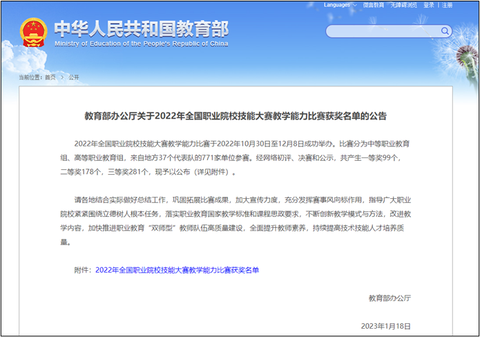 2023年1月18日,教育部公布了2022年全国职业院校技能大赛教学能力比赛获奖名单,我校航海技术学院张一鸣、王艺、杨太金教学团队的《航运风险防控与应急处置》,荣获高职专业课程一组一等奖。