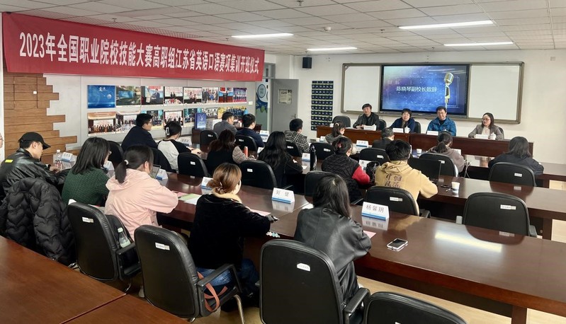 3月31日下午,2023年全国职业院校技能大赛高职组英语口语赛项赛前集训开班仪式在我校成功举行。学校副校长陈晓琴教授,江苏省职业院校技能大赛英语口语赛项专家组组长、东南大学博士生导师李霄翔教授、江苏省职业院校技能大赛英语口语赛项专家组成员、国际教育学院李恩亮教授出席开班仪式,来自全省10所高职院校的师生训练团队参加本次开班仪式。会议由国际教育学院副院长张圆圆主持。