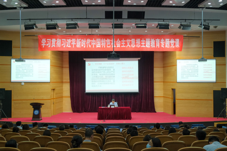 按照省委学习贯彻习近平新时代中国特色社会主义思想主题教育部署以及学校主题教育工作小组有关安排,2023年6月16日下午14:00,副校长缪克银在图书馆大报告厅以《深刻领悟“六个必须坚持”核心要义,引领高等职业教育高质量发展》为题讲授主题教育专题党课。人事处、科技处、基建处、图书馆和航海技术学院等单位师生党员70余人参加了学习。