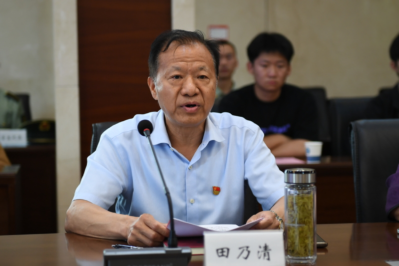 会议伊始,田乃清对张慕忠老人的到来表示诚挚的感谢。他指出,张慕忠老人起义归来后作为海员训练班(江苏海事职业技术学院前身)第四期学员,历经思想的洗礼,投身到新中国的航运事业,为新中国的社会主义建设做出了不可磨灭的贡献。田乃清代表学校向辛勤工作在海运一线的全体海员致以节日的问候,向到场的嘉宾表示热烈的欢迎,他简要介绍了学校七十多年的发展历程和近年来对海洋强国、“一带一路”建设的积极贡献。江苏海院与生俱来的红色基因和家国情怀,凝聚独具特色的海院精神,是学校数十年深耕航海办学特色,着力培养适应新时代海洋强国建设和构建新发展格局要求的深蓝产业工匠的源动力。他希望航海职教人不负众望,以推动航海职业教育高质量发展为己任,接力奋斗、勇往直前,为我国航运事业由启航、远航到领航的飞跃输送更多、更优质、更高端的技术技能人才,为海洋与航运强国建设做出更积极的贡献。