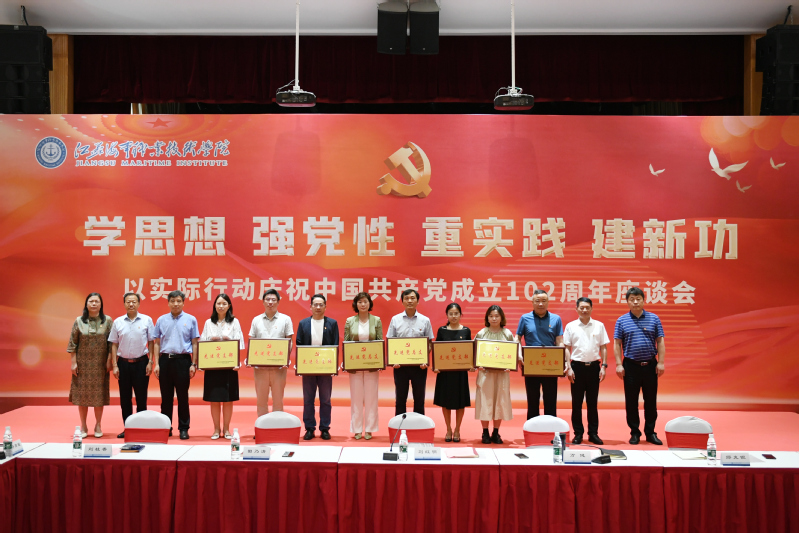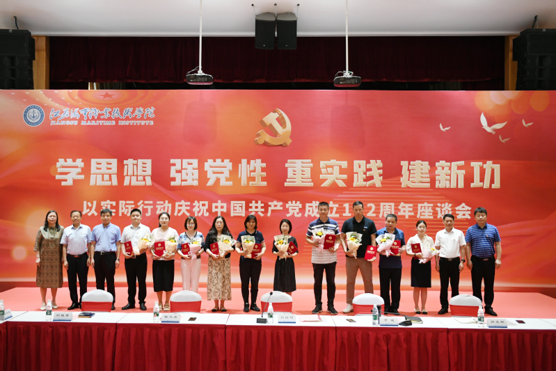 万健宣读《江苏海事职业技术学院关于表彰2023年校级优秀共产党员、优秀党务工作者和先进基层党组织的决定》,2个先进党总支、6个先进党支部、83名优秀教工党员、9名优秀党务工作者受到学校党委的表彰。与会领导为受表彰的先进党组织和优秀个人颁奖。