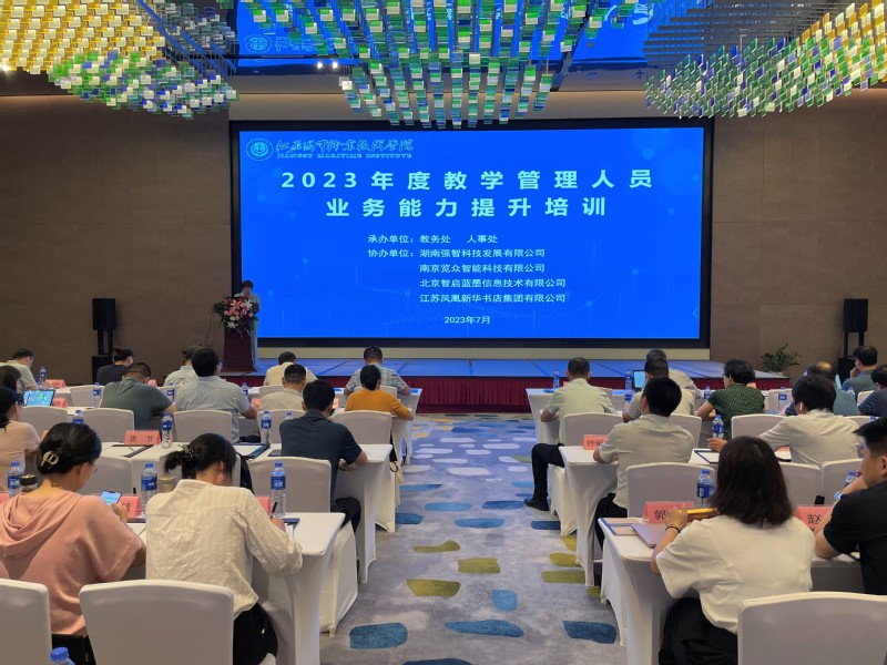 为深入开展学习贯彻习近平新时代中国特色社会主义思想主题教育、落实国家职业教育改革发展相关政策精神,切实提升学校教学管理水平和效能,有力推动学校“双高计划”建设和高质量发展,6月30日至7月1日,我校举办2023年度教学管理人员业务能力提升培训。副校长陈晓琴到会作开班动员讲话并主持,二级学院(部)院长(主任)、副院长、专业(课程、实训)中心主任、教务员以及校级教学督导员、教务处全体工作人员参加培训。本次培训以“凝心铸魂强党性、踔厉奋发建新功”为主题,通过红色主题教育、专家报告、政策宣贯、交流研讨等形式,促进我校教学管理队伍的政治素质和业务能力双线提升。