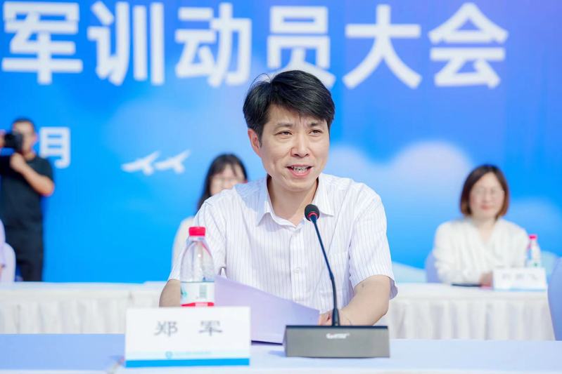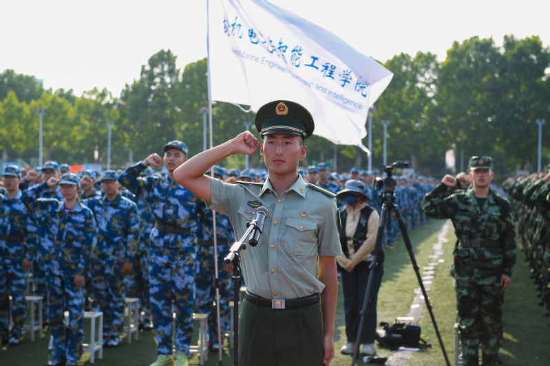 随后军训团团长、士官与军事教育学院院长袁周向2023级全体新生做军训动员,强调了军训的目的、重要意义、具体要求,希望全体新生积极投入到新生军训之中,增强国防意识,提高军事素养。