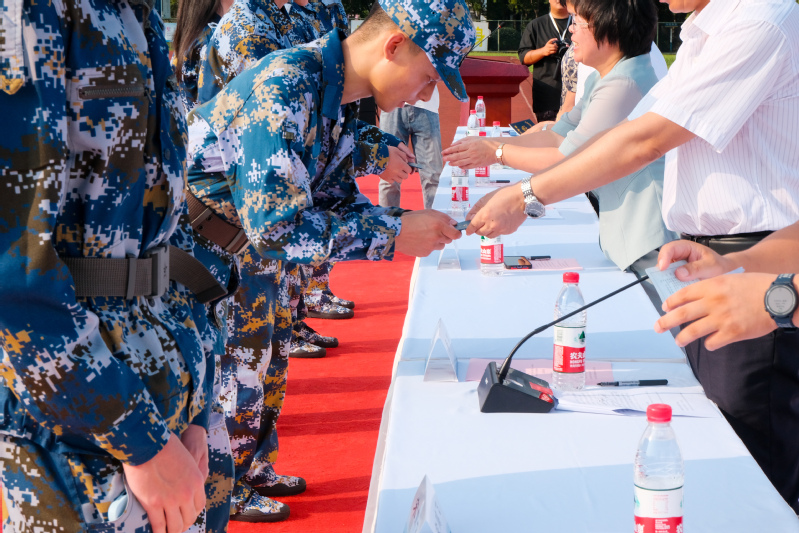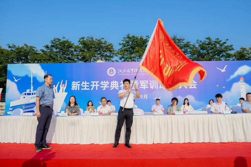 最后,温华兵校长给2023级全体新生讲话,他从“仰望灯塔山,读懂半霞湖,拥抱江与海”三个方面讲授了“新生第一课”:一是要仰望灯塔山,树立远大志向,明大德、成大才、担大任,书写无悔于时代和自己的青春篇章;二是要读懂半霞湖,深入了解悠久的学校历史、厚重的红色基因、一流的办学条件、学校的名师名匠、科技创新和学生榜样,珍惜时光,潜心读书;三是要拥抱江与海,勇敢奋斗、学会学习、耐心坚韧、热爱生活,把个人的成长融入时代发展的巨大洪流,融入航运事业的滚滚大潮。温华兵校长的讲话激发了同学们投身建设海洋强国、中华民族伟大复兴中国梦想的热情。温华兵校长为军训团授旗并宣布新生军训正式开始。