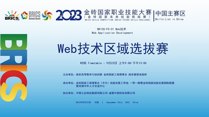 9月23日,由南非高等教育与培训部、金砖国家工商理事会以及南非豪登省政府联合主办,2023金砖国家职业技能大赛Web技术赛项东区选拔赛采用线上分赛场的形式在各参赛单位拉开帷幕。