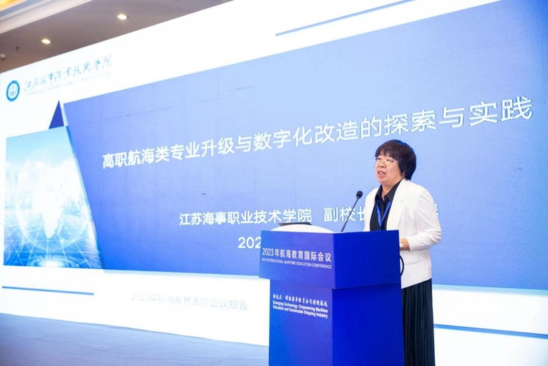 陈晓琴以“高职航海类专业升级与数字化改造的探索与实践”为题,从专业升级改造的背景与挑战、专业升级改造的目标与策略以及江苏海事职业技术学院经验做法等三个方面,高度概括了学校近年来在专业升级与数字化改造方面取得的成绩以及为海事教育领域所做的贡献,发言受到国内外与会嘉宾高度肯定。