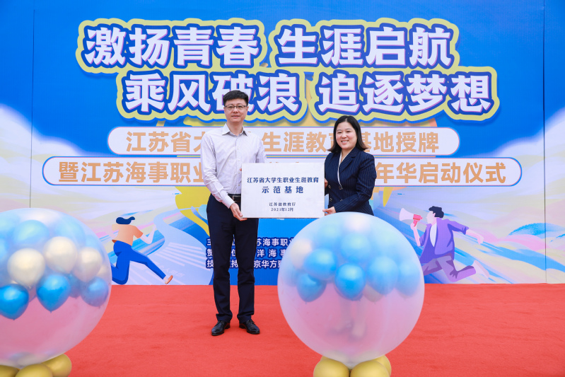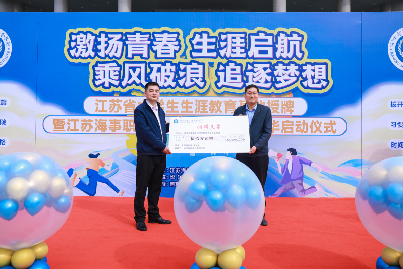黄炜为学校颁发江苏省大学生生涯教育示范基地牌匾,标志着学校在生涯教育领域迈入新阶段。同时,杨善利代表华洋海事中心慷慨捐赠50万元,为学校生涯教育发展注入新的动力。紧接着,领导为18位来自各行各业的生涯公益讲师颁发聘书,期望他们能为学生职业生涯发展贡献更多宝贵经验。
