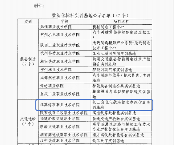 近日,中国职业技术教育学会发布《关于“百所数智化标杆实训基地”“百门名师工匠课”首批征集案例遴选结果的公示》(职教学会秘〔2023〕62号),我校长三角现代航海技术虚拟仿真实训基地成功入选全国首批“数智化标杆实训基地”。