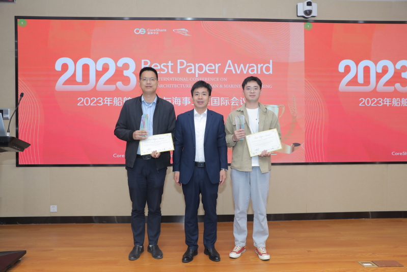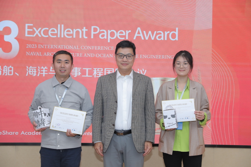 本次会议评选出了最佳论文2篇,优秀论文2篇。大会主席温华兵教授、会议嘉宾王蛟教授分别为最佳论文和优秀论文获得者颁发了奖杯和荣誉证书。我校教师李臣的论文《Research on the influence of horizontal spacing on the interference characteristics of multiple wingsails in sail-assisted ships》成功获选大会优秀论文。