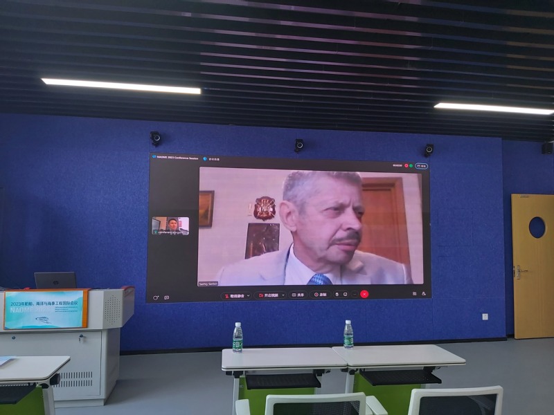 乌克兰科学院院士Serhiy Serbin教授、英国斯特莱斯克莱德大学周培林教授通过线上参加会议并做主旨报告。Serhiy Serbin教授做了题为“等离子化学系统在船舶动力装置上的发展”主旨报告,介绍了其在等离子化学燃烧方法上的研究成果,分析了基于此方法提升燃气轮机、柴油机等动力装置效能的实验效果和应用前景。周培林教授以“航运零碳排放或低碳排放的可替代燃料”为题做主旨报告,介绍了将氨燃料作为船舶替代燃料的优缺点,回顾了氨燃料发动机的发展现状和问题,分享了氨燃料作为船舶替代能源的可行性研究成果。