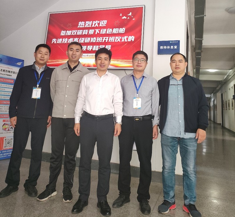 此次高级研修班是根据《人力资源社会保障部办公厅关于印发专业技术人员知识更新工程2023年高级研修项目计划的通知》(人社厅函〔2023〕47号),为提高培养船舶“船-机-电”设计人才对“碳达峰、碳中和”战略认识,探索“双碳”背景下船舶绿色-环保新方向,拓展船舶工业发展新赛道,培养绿色船舶先进技术专门人才举办。此次培训班共有60多名省内外船舶与海洋工程装备领域高级专业技术人员参加,我校航海学院、机电学院、船舶学院11名专任教师参加了本次培训。