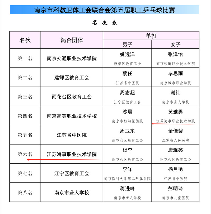 我校组队参加南京市科教卫体工会联合会第五届职工乒乓球赛喜获佳绩
