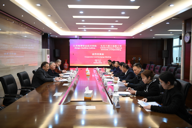 乌克兰国立造船大学校长Trushliakov Eugeniy先生对学校的邀请和热情接待表示了感谢,对两校的合作充满期待和信心。他表示,江苏海事职业技术学院办学条件优越,有着厚重的历史文化,希望两校在教育教学、科技创新、学生教师交换培养、学术交流等方面深入合作。