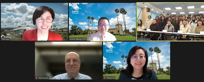 陈晓琴代表学校致辞,她介绍了我校的发展历程以及取得的成绩,回顾了我校与加州州立理工大学近年来合作的重要项目,并对Lisa Xue博士和她的团队为我校量身定做线上项目表示感谢。她希望全体参与师生把握机会,认真学习,虚心请教,深入沟通,了解彼此的文化,争做两国交流的友好使者。