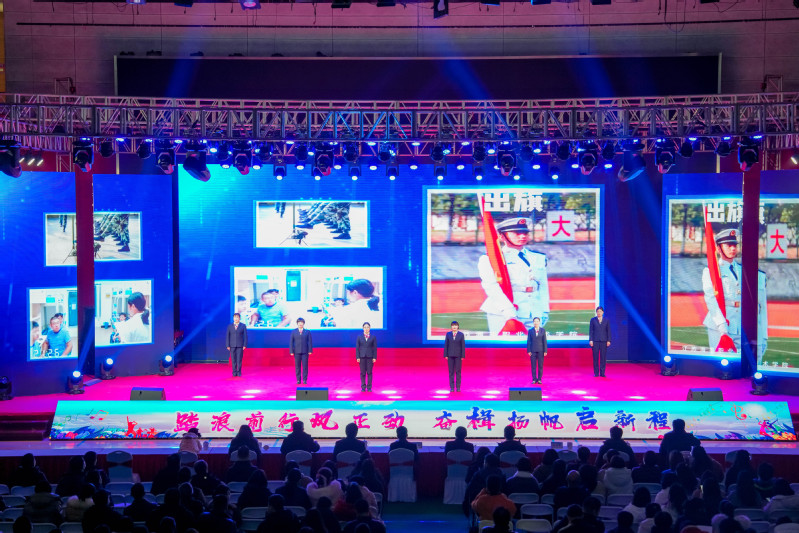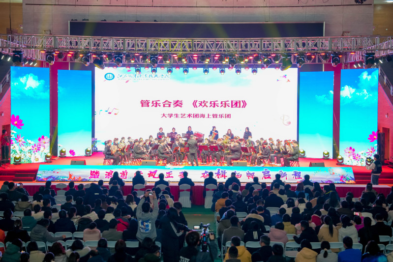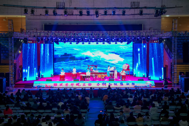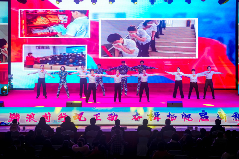 本次文艺汇演分为“感召唤 立潮头”“创业图 发展路”“弄潮曲 结硕果”“逐新梦 创未来”四个篇章,轻松欢快的管乐合奏《欢乐乐园》拉开了文艺汇演的帷幕。舞蹈《瑞狮起舞》为师生们带来吉祥如意、事事平安,为学校新的一年事业发展带来了好彩头;歌伴舞《祖国不会忘记》《万疆》、合唱《天耀中华》《在灿烂阳光下》《如愿》、萨克斯合奏《我和我的祖国》用最优美的画卷描绘了祖国的大好河山,用最神圣的情感抒发了对祖国的真挚爱恋和美好祝福;校领导集体诵读《江苏海院赋》,带我们从字里行间将岁月拆解,回望海院七十余载风雨历程,激励大家以更加昂扬的姿态,向着建设中国特色世界水平海事类高等职业院校的宏伟目标奋力迈进;舞蹈《大明工匠》完美诠释了坚韧不拔,勇于奋斗、敢于创新、永不言弃、精益求精的大明工匠精神;歌伴舞《筑梦丝绸路 融通世界情》带大家一起领略“一带一路”大道上的互联互通新格局,展示了我校留学生们活泼可爱、激情洋溢的风采;打击乐合奏《筑梦深蓝》给人以无限的震撼、感动与遐想;歌曲串烧《青苹果乐园》《辅导员阵线联盟》《和你一样》《咱当兵的就是这么帅》生动地展示了老师与学生、宿管与学生之间平等互爱的和谐关系以及美好温馨的校园文化氛围;合唱《我们都是追梦人》表达了海院师生厚植爱国情怀,奋斗青春,争做以匠心铸就人生华章的追梦人。