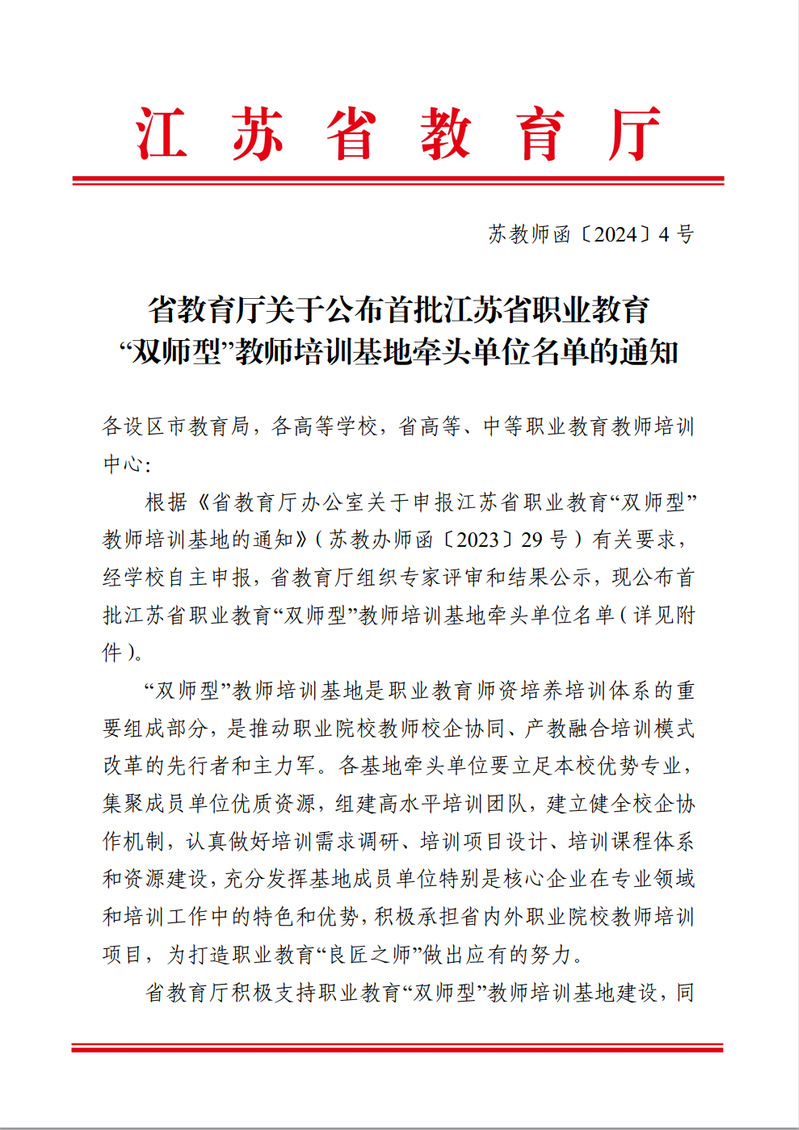 近日,江苏省教育厅公布首批江苏省职业教育“双师型”教师培训基地。我校航海技术等3个水上运输类专业成功入选交通运输大类“双师型”教师培训基地。