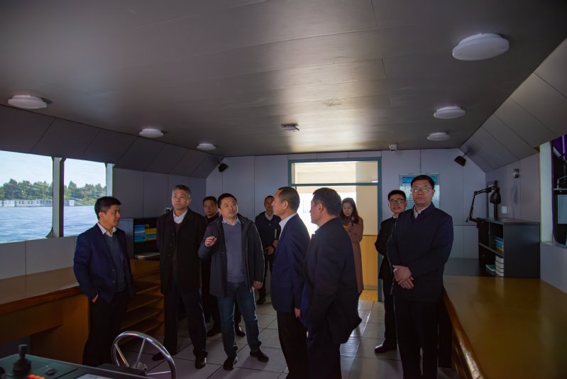 黄局长一行还实地考察了学校航海模拟器实训中心、船舶智能化机舱实训基地以及江苏省船员服务协会办公场所。