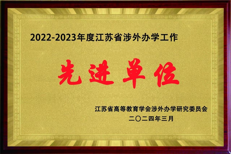 3月28-29日,2022-2023年度江苏省高等教育学会涉外办学研究委员会年会在江苏师范大学召开。会上对全省涉外办学先进单位进行了表彰。我校荣获2022-2023年度江苏省涉外办学先进单位。