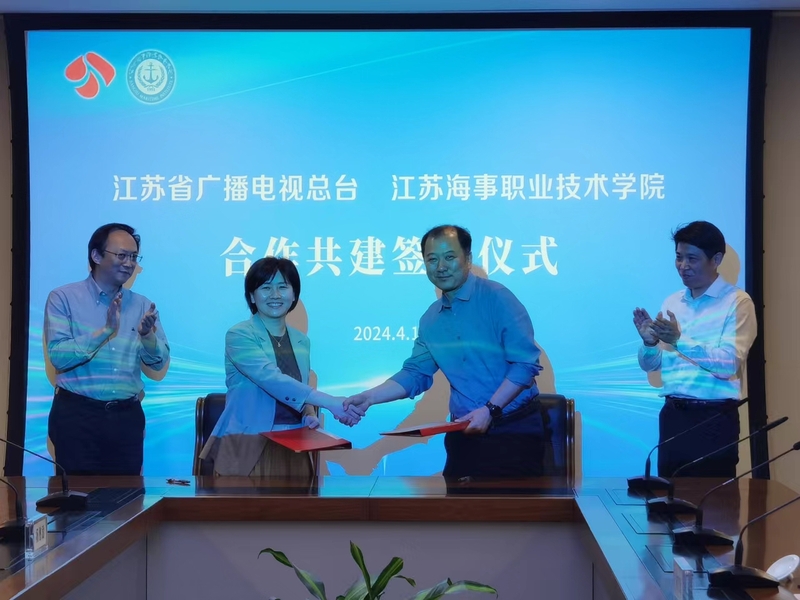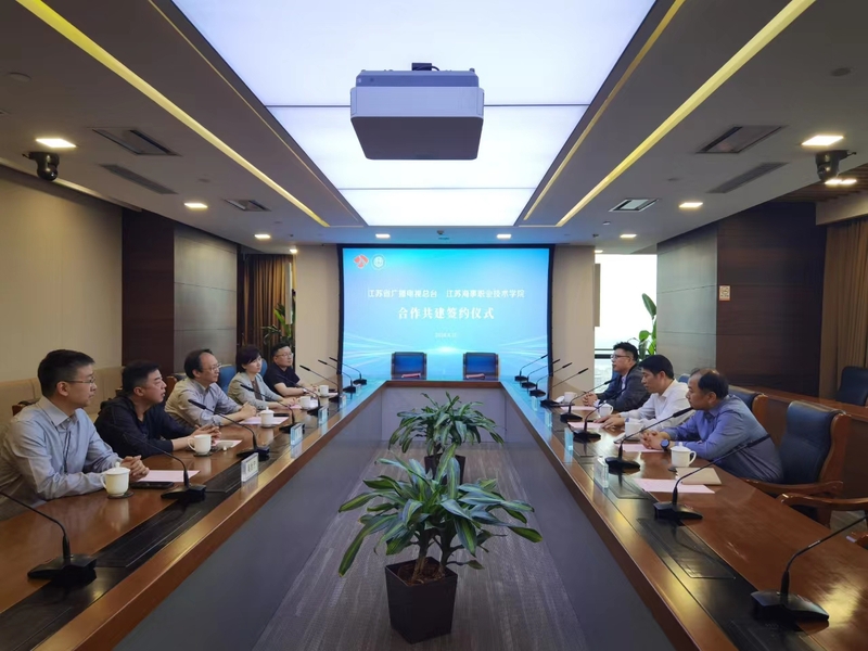 在愉快友好的氛围中,双方代表签订了台校合作协议。郑军一行参观考察了江苏省广播电视总台的全数字演播大厅以及各媒介中心和媒体平台。