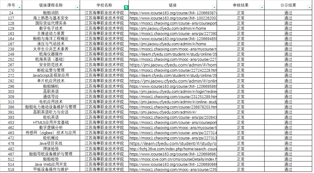 近日,江苏省高等学校教育信息化研究会和江苏省高等教育学会高校成人教育研究委员会联合发布江苏高等继续教育“一平台两系统”第二批试运行在线课程资源,我校申报的《船舶消防》等31门课程入选链接课程资源,《毛泽东思想和中国特色社会主义理论体系概论》等24门课程均入选新建课程资源。