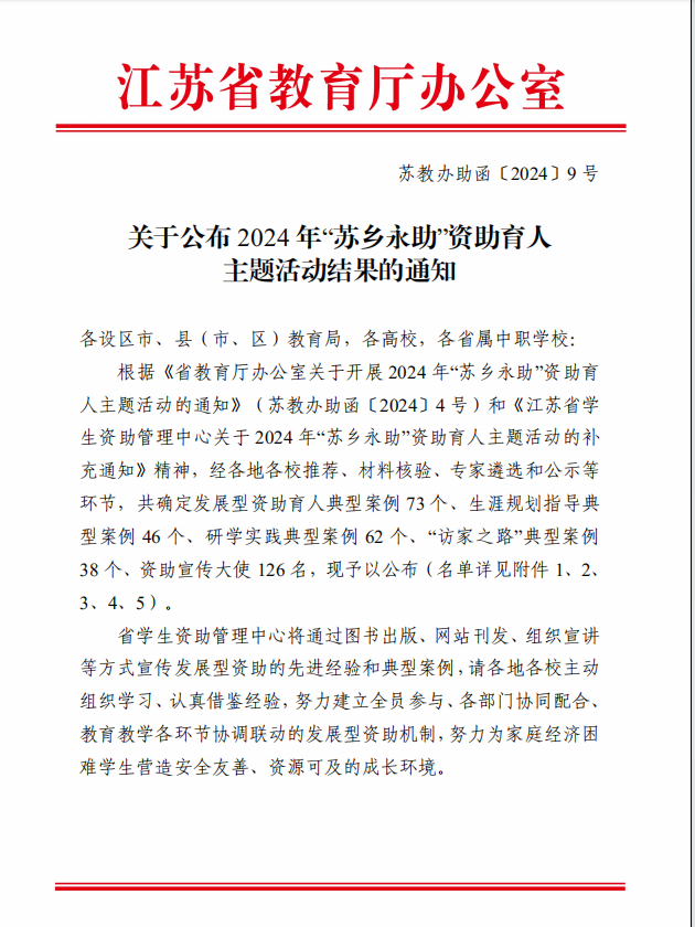 喜报——我校在2024年江苏省“苏乡永助”资助育人主题活动中喜获佳绩