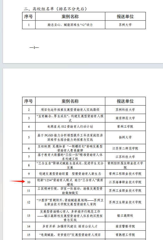 近日,根据省教育厅办公室《关于公布2024年“苏乡永助”资助育人主题活动结果的通知》(苏教办助函〔2024〕9号),我校选送的船舶与智能制造学院《创新“1234”资助育人模式 助力“三全育人”提质增效》荣获发展型资助育人典型案例,经济管理学院党总支副书记陈佳获评“学生资助工作宣传大使”——资助工作者称号。