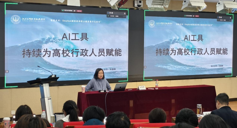 2月19日至20日,我校成功举办了为期两天的“智航未来:DeepSeek赋能航海职业教育数字化转型”专题培训会。党委书记万健、校长温华兵、党委班子成员、中层干部、全校教职员工以及相关人员共计千余人参加培训。本次培训,学校积极联合江苏省人工智能学会,并与金智教育、豪讯科技等知名企业携手合作,共同精心研发了一套针对性强、实用性高的基于DeepSeek等国产大模型技术应用课程体系。