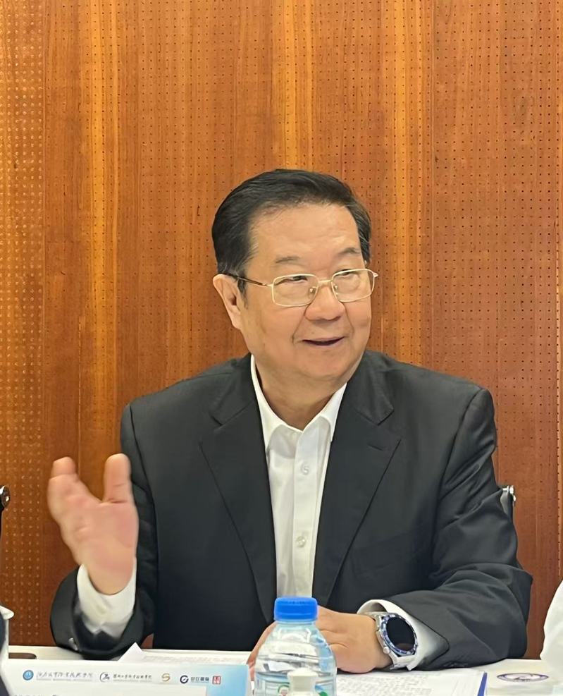 陈洪代表两校汇报了阿联酋郑和学院的工作进展情况。他从项目建设背景、阶段性成果两个维度,梳理了郑和学院建设的推进历程,并对2025年的重点工作规划作了详细说明。陈晓琴进一步补充发言,着重围绕培训实施的具体情况、学院建设过程中遭遇的瓶颈,以及对协会在指导与支持方面的期待,进行了详尽阐述。
