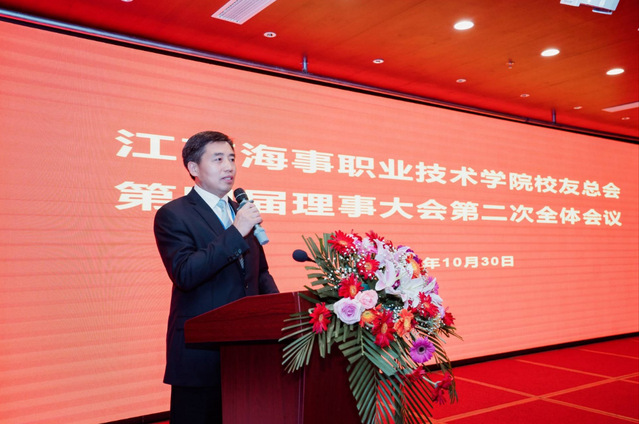校长万健首先致辞,代表全校12000名师生向校友的到来表示热烈欢迎。他说,学校办学近70年来,一直坚持特色办学,深耕航海不动摇,凭借深厚的办学底蕴,抓住职业教育改革的历史机遇,把握涉江涉海利好政策,实现了一次又一次超越,取得了一项又一项令人瞩目的成绩。放眼未来,希望各地校友会,凝聚校友力量,一如既往的关心支持母校,助力母校发展。