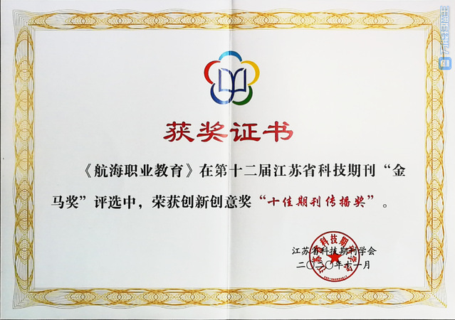 11月18日,江苏省科技期刊学会第八届会员大会暨第九届江苏科技期刊发展论坛大会在南京召开,会议同时举行了第十二届江苏科技期刊“金马奖”颁奖仪式,我校《航海职业教育》荣获“优秀期刊传播奖”。