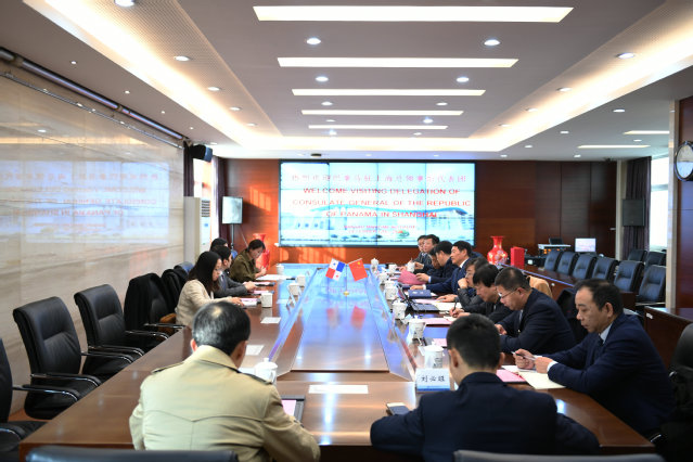 万健首先代表学校对总领事一行的到访表示热烈欢迎,并着重介绍了我校的基本办学情况和国际化办学成果,充分肯定了巴拿马共和国驻上海总领馆对于我校巴拿马船员培训基地各项工作的大力支持和协助,并期待通过更进一步的合作深化中巴海事教育合作和交流。