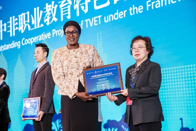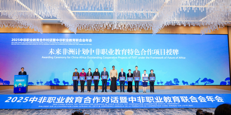 11月6日至7日,2025中非职业教育合作对话暨中非职业教育合作会年会在浙江金华召开。本次会议以“深化产教融合,建设中非职教共同体”为主题,是2025中非经贸和文化论坛的重要组成部分。会上,非洲技术与应用型大学和学院协会秘书长扎哈·法勒向我校等入选单位授予“未来非洲计划中非职业教育特色合作项目”牌匾,标志着我校在中非职业教育合作领域的实践探索迈开坚实一步。我校副校长陈晓琴受邀参会并参与成果发布环节。